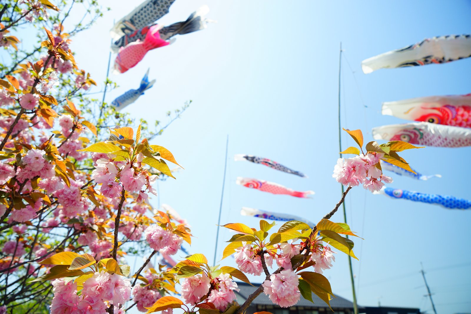 甍(いらか)の波と雲の波 重なる波の中空(なかぞら)を 橘かおる朝風に 高く泳ぐや鯉のぼり