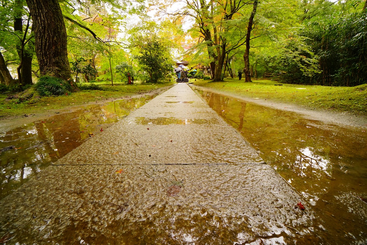 さて、9:25ごろ平泉中尊寺の駐車場に着いた。しかし、雨模様。初めて傘をさした。長い坂道(参道ではなく並行に走る道路)を登った。他のメンバーは相当な健脚でかろうじて着いていくことができた。カメラを2台持っているので、それが太ももに響く。境内の紅葉はかなり進んではいるものの、まだ緑の葉が残っていた。傘をさしての撮影は難しい。金堂は覆堂に収められていて、堂内は残念ながら撮影禁止。最初の覆堂は、鎌倉時代に建てられたそうだ。その古い覆堂自体も文化財として保存されている。長い歴史がある。ここでも芭蕉の銅像が建てられていた。ここでの持ち時間もわずか1時間なので、あまりゆっくりできない。帰り道は参道だったが、歩きにくい。雪が積もればさらに歩くのは大変だろう。健康祈願の人が参拝するというのは、健康だから参拝できるということだろう。いつもこういう坂道や階段のある神社仏閣に来ると思う。